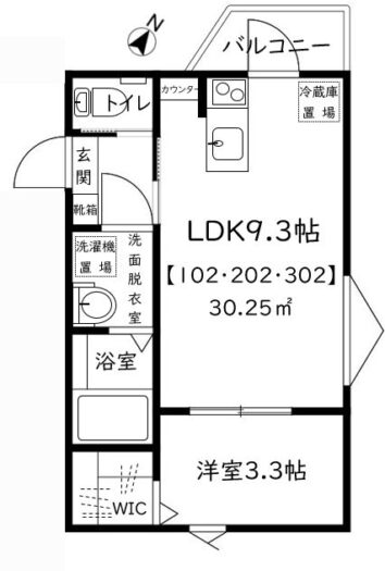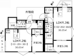 30.03㎡(1号室)・30.25㎡(2号室) |